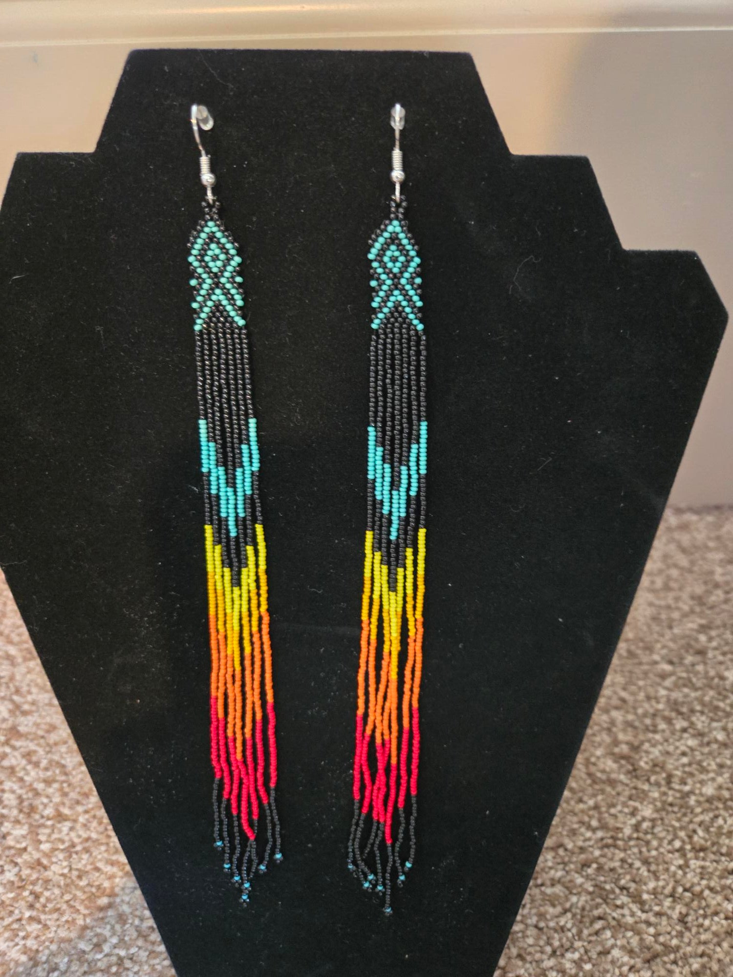 Black Fire Color Glass Seed Beads Beaded Extra long earrings