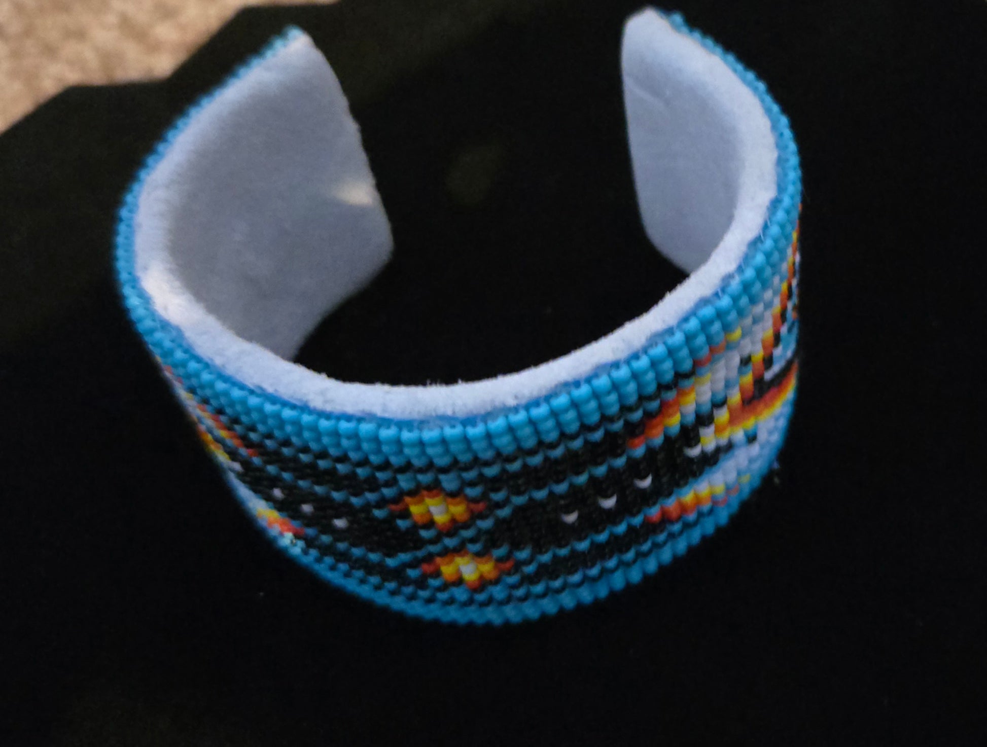 Handmade Beaded Cyan Blue Diamond Pattern Hard Cuff Bracelet