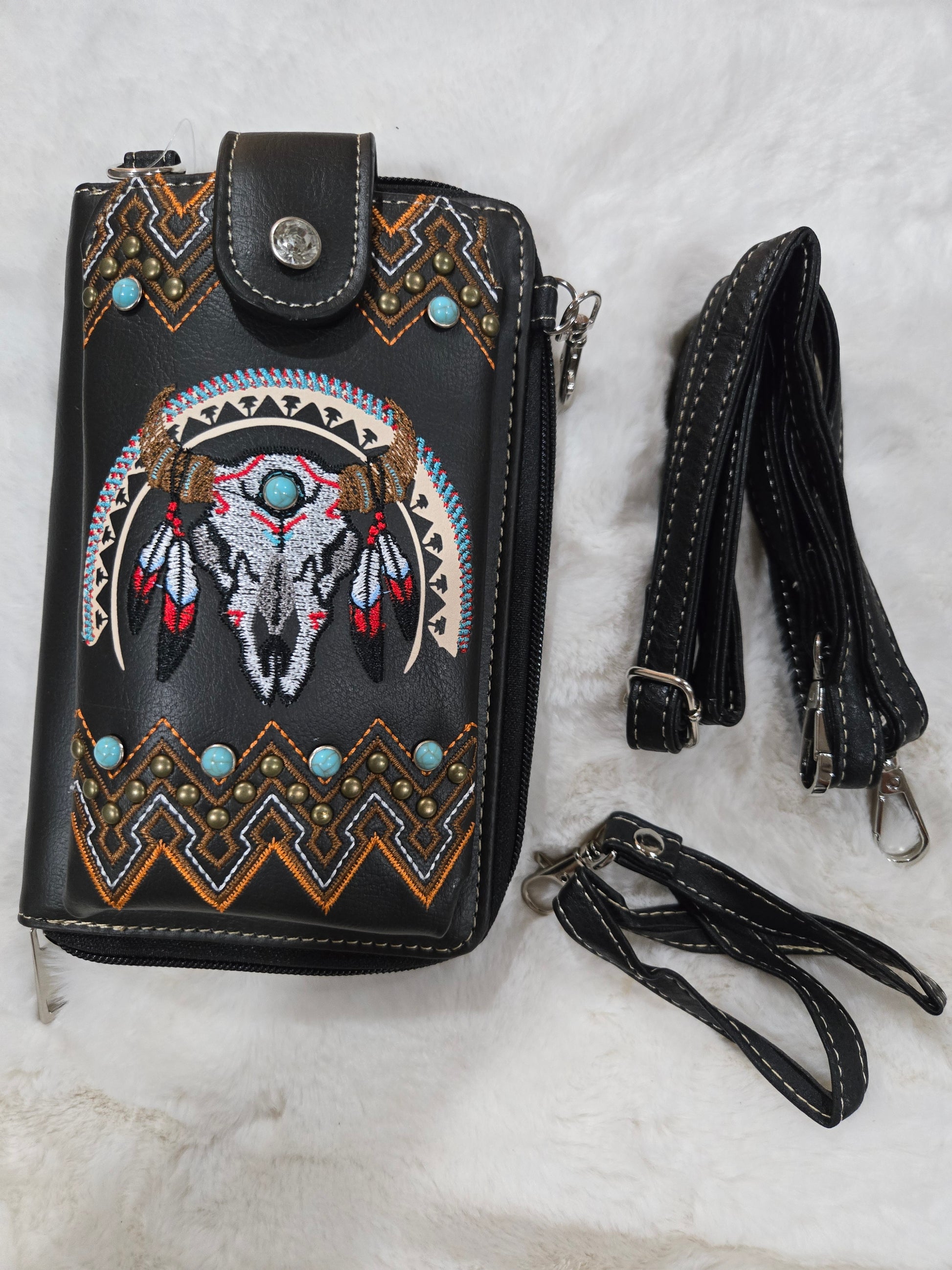 Longhorn Skull Embroidered Native Tribal Southwestern Phone Wallet